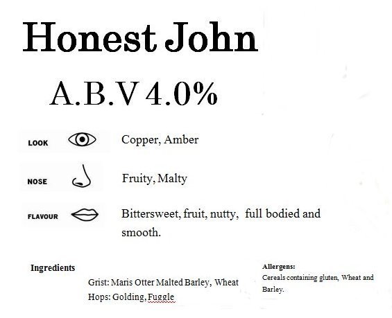 'Honest John' was the name by which our founder was affectionately known locally, he was an innovator who embraced steam technology when building his brewhouse, at a time when steam was the new kid on the block. You could call him the original steam punk!Tasting Notes