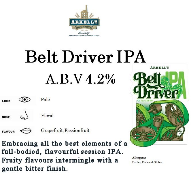 Belt Driver is a full-bodied, flavourful Indian Pale Ale (IPA) which bursts with tropical and grapefruit flavours and like a cask beer should, draws you in for that next pint every time!Tasting Notes