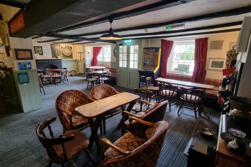 The inn and the adjoining cottage stands on the site of eight earlier cottages which must have been of near doll's house proportions as the pub has the distinction of being Arkell's smallest.